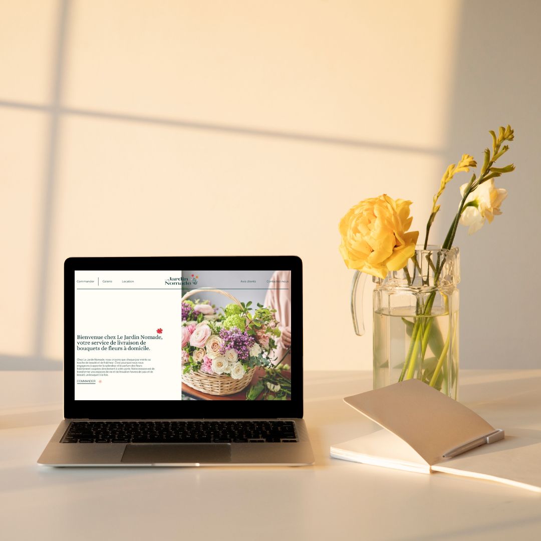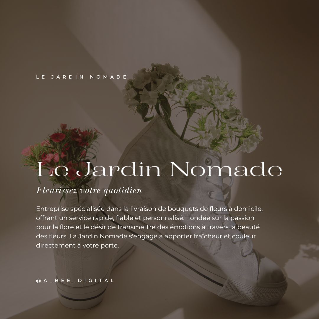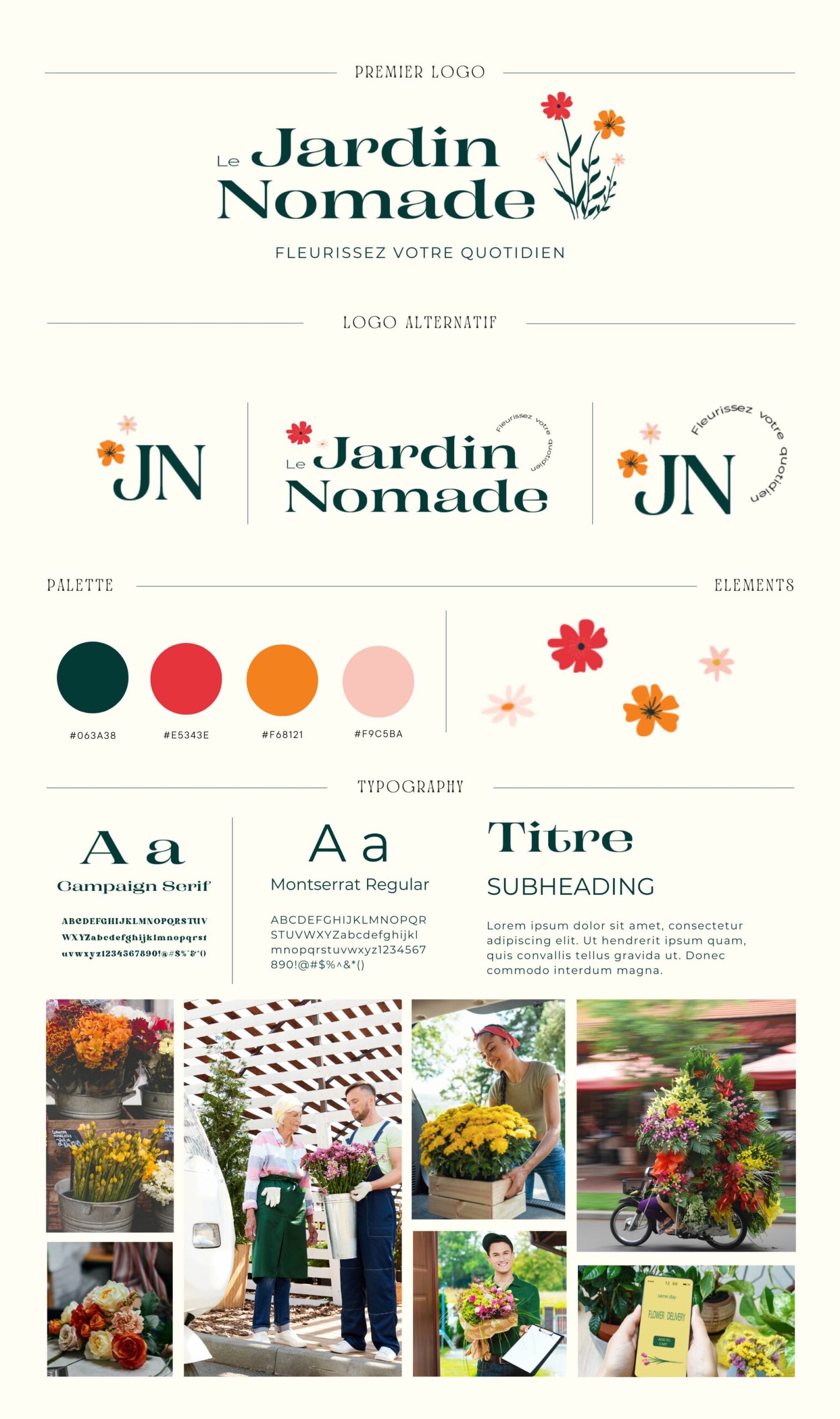 Enfin, pour compléter notre identité visuelle, nous avons choisi une typographie élégante et moderne. La typographie utilisée pour "Le Jardin Nomade" allie finesse et lisibilité, créant ainsi un équilibre parfait entre esthétique et fonctionnalité. Cette typographie apporte une touche d'élégance et de sophistication à l'ensemble de la marque, renforçant ainsi son son caractère distinctif.